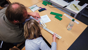 Ein Kontrastprogramm zum High Performance Computing bildete ein Workshop zum Rechnen mit dem Rechenschieber, einem jahrhundertealten Hilfsmittel, das mit dem Aufkommen elektronischer Taschenrechner sehr schnell verschwand. In je fünfzig Minuten konnten Besucher die Grundlagen des Umgangs mit dem „Schieber“ erlernen. Es hat sich gezeigt, dass auch heute noch eine große Faszination von einem Gerät ausgeht, das ohne Batterien und Stromanschluss das Multiplizieren, Dividieren und noch viele weit komplexere Berechnungen in hoher Geschwindigkeit ermöglicht. Alle drei Workshops waren von Interessierten aller Altersstufen sehr gut besucht.