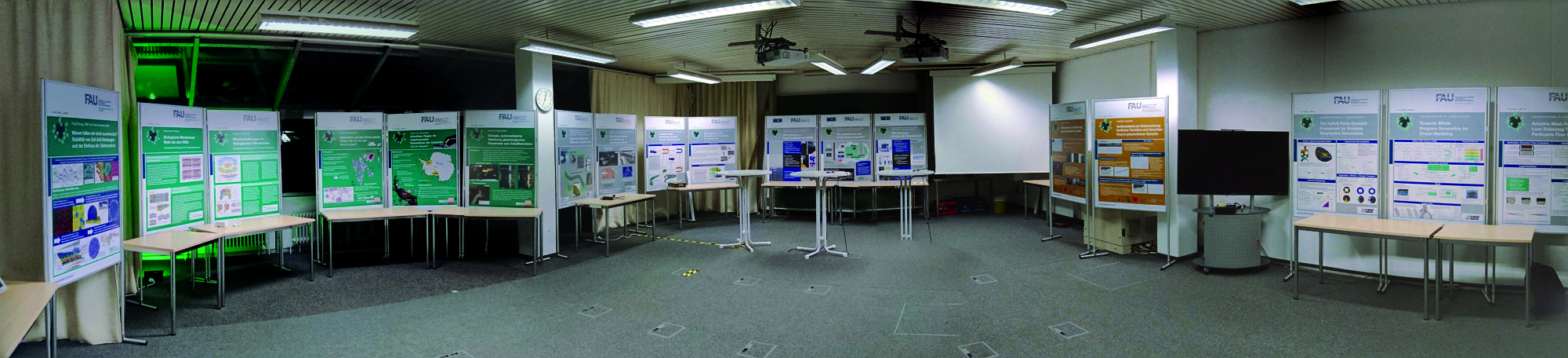 Auch in diesem Jahr waren beim Abendprogramm die etablierten Führungen durch das RRZE und die Demonstration der funktionsfähigen Zuse Z23 aus dem Jahr 1962 wieder wahre Publikumsmagnete. Erstmals seit 2005 demonstrierte das RRZE außerdem wieder gemeinsam mit einigen HPC-Kunden und mit Hilfe von Postern, Videos und Objekten zum Anfassen die Welt des wissenschaftlichen Hochleistungsrechnens. Im „HPC-Village“ waren faszinierende Beispiele aus so unterschiedlichen Gebieten wie der Fluiddynamik, der Gestenerkennung, der Biophysik von Membranen oder der Dynamik von Gletschern zu bestaunen.