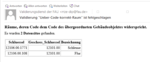 Die Daten der FAU sind auf eine Vielzahl von Verfahren und Anwendungen in unterschiedlichen Repräsentationen verteilt. Das RRZE hat nun den Validierungsservice entwickelt, der die Qualität und Konsistenz dieser Daten in Hinblick auf ihre universitätsweite Nutzung überprüft und Auffälligkeiten an die Verfahrensbetreuer meldet. (BI95, KS, FrW)