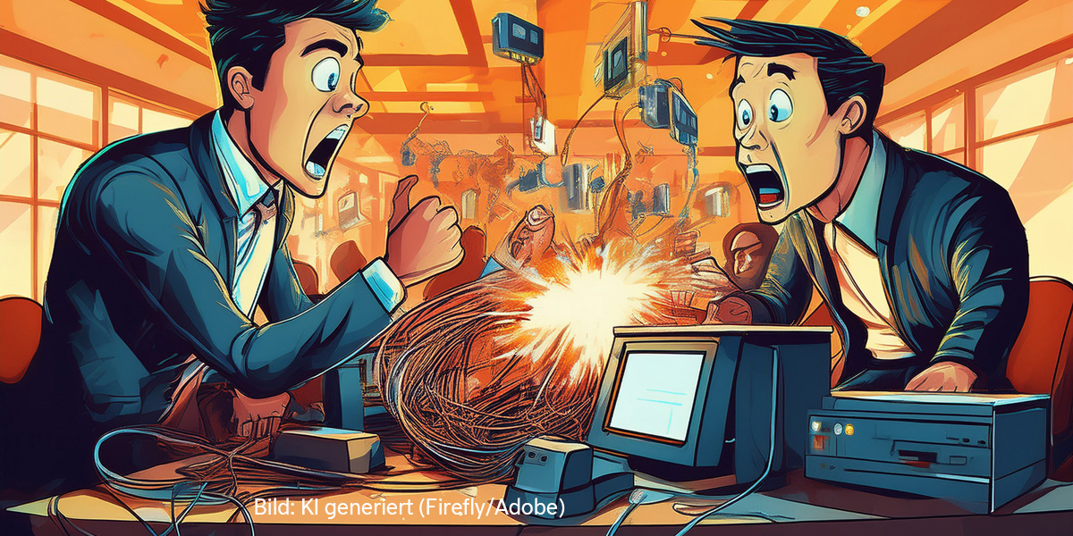 Dennoch gilt: Alle Bilder, die wir generieren lassen, prüfen wir gründlich auf Logikfehler. Denn wer will schon als Rechenzentrum ein Bild veröffentlichen, auf dem die Kabel in der Büroschublade verschwinden?
